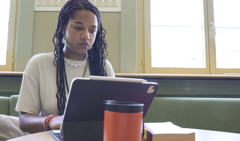 Zwei Schülerinnen testen den KI-Tutor. Dieser konzentriert sich auf vier Erkenntnisebenen: Schlussfolgerungen, mathematische und physikalische Grundkenntnisse sowie Konzept- und Textverständnis.EDUCATION 2.25