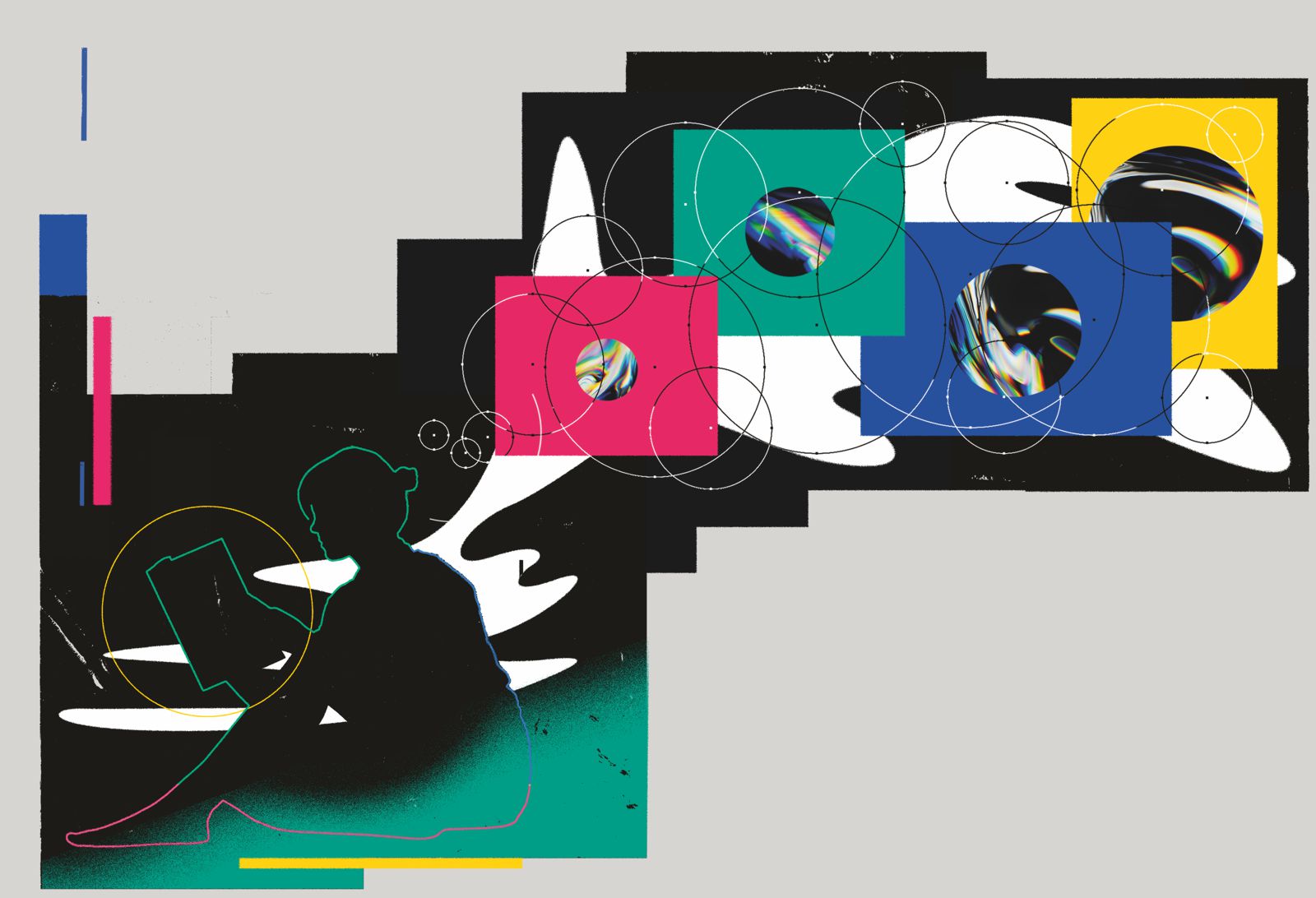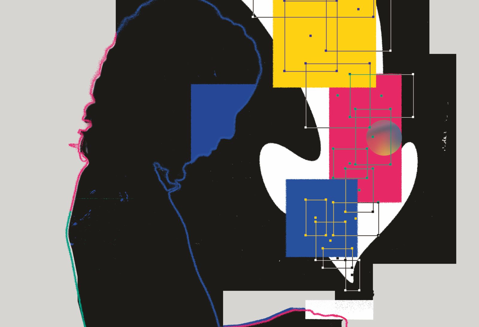 Pour illustrer le thème de cette édition, nous avons fait appel au designer graphique bernois David Nydegger. Il a utilisé des photos de parties de visage et des formes iridescentes, et les a superposées avec d’autres formes colorées pour reproduire la façon dont des images intérieures peuvent jaillir de vagues émotions. Cette série d’images abstraites ne montre pas ce qui est visible, mais ce qui est pensé.